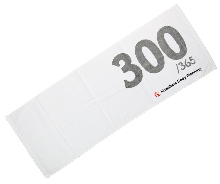 年間300回のワークアウト達成、という思いが込められたタオル。